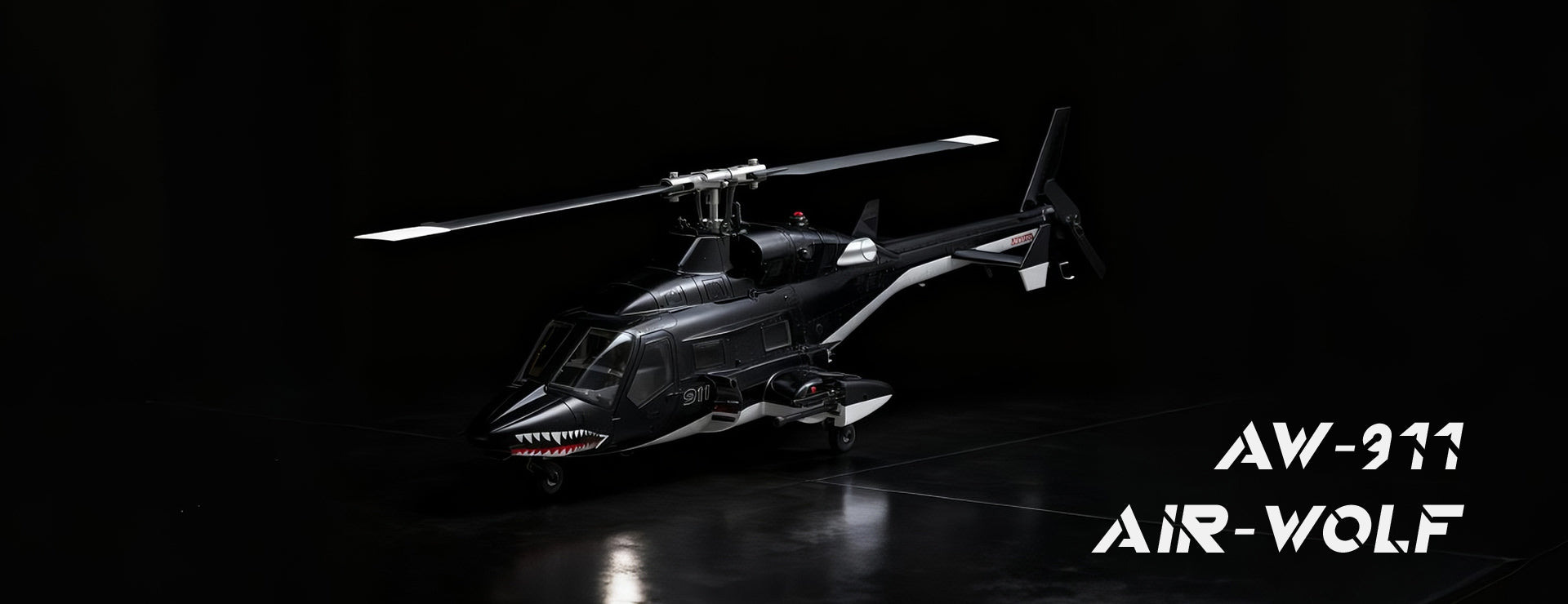 This 32:1 lifelike replica with weapon racks, rocket launchers and machine guns has a wingless design, stable flight system, precise positioning and responsive 4306 brushless motor.